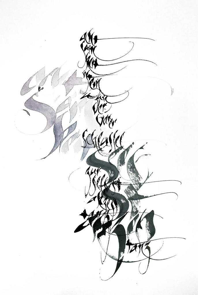 Jedes Schriftbild ist ein komponiertes Einzelwerk. Die hier vorgestellten Schriftbilder (es ist nur ein Auszug aus meiner Arbeit) sind verkäuflich. Sprechen Sie mich einfach an.